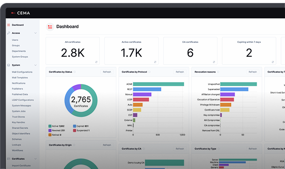 CEMA automates and centralizes certificate management processes across infrastructures with full lifecycle visibility.