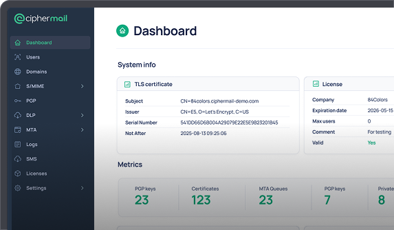 CipherMail provides centrally managed solutions for automatic encryption and digital signing of email.